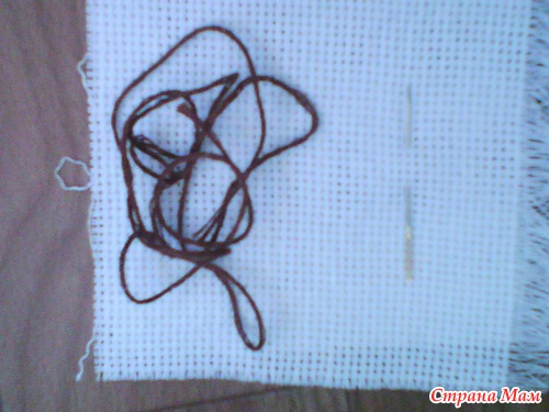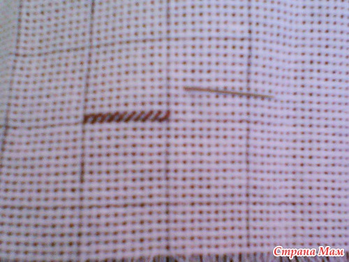 с изнаночной стороны продеваем иголку в клеточку внизу размеченного квадратика