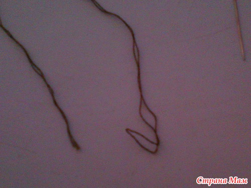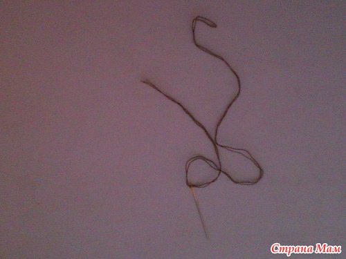 в правй верхний угол вводим иголку и пропускаем через наше петельку с изнаники