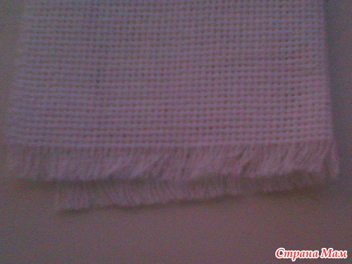 она по структуре плотная, дырочки ровные и шьется на ней очень удобно. Для того чтобы край канвы при работе не сыпался
