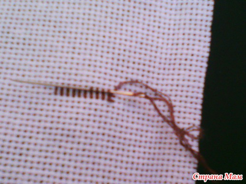 она по структуре плотная, дырочки ровные и шьется на ней очень удобно. Для того чтобы край канвы при работе не сыпался