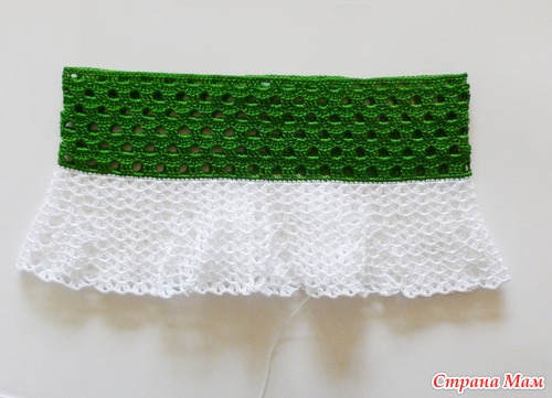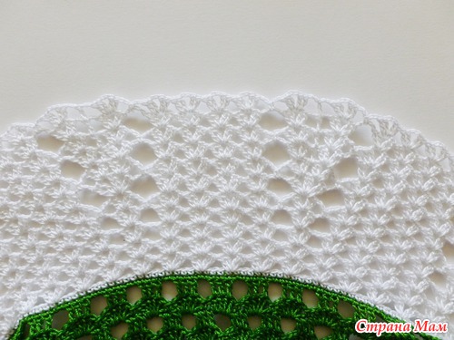 Итак, перешла к вывязыванию юбочной части платья. Сменила нить на белую, связала один ряд СБН.