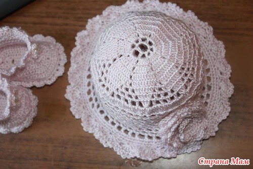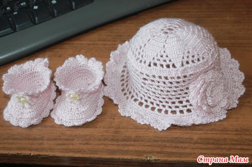 Вязала из тоненького акрила "Crystal " от Vita в 50 г - 275 м. Крючок 1,25 мм. Комплект состоит из платья, трусиков, пинеточек и панамки