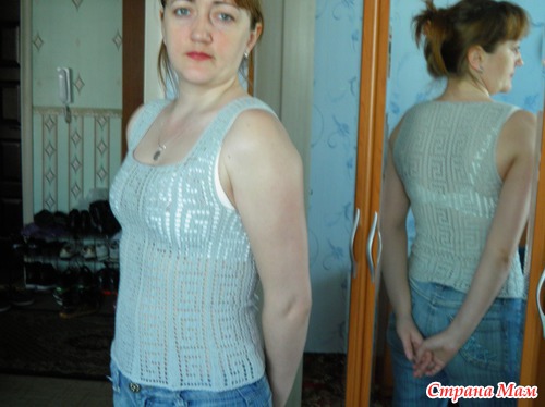 Очень приятная маечка вам идет, да и приятная к телу наверняка Вопросик, а лучше по кругу вязать или поворотными рядами, есть разница? тоже давно хочу для себя такую красотулю связать.