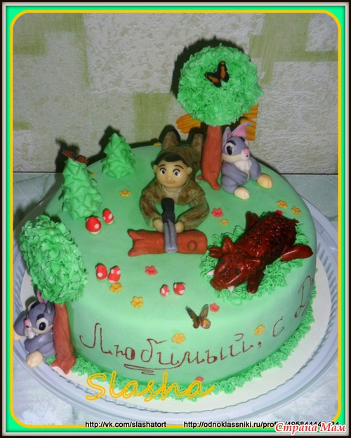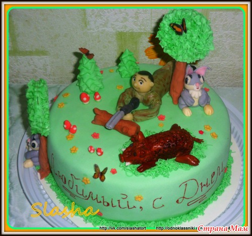 Торт для охотника на кабана. Внутри "Воздушный сникерс". Вес 2,9 кг Мастика ММ, полуганаш.