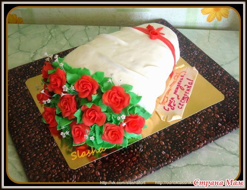 На этот торт прислали мне подобное фото и просили сделать так же. Увидев мой торт заказчица меня порадовала, воскликнув:" Вау!!! Да он краше чем на фото!!!" - ну естессна я была довольна. Люблю таких заказчиков