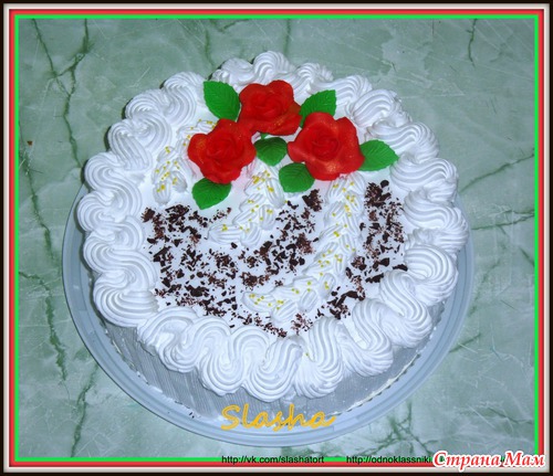 На этот торт прислали мне подобное фото и просили сделать так же. Увидев мой торт заказчица меня порадовала, воскликнув:" Вау!!! Да он краше чем на фото!!!" - ну естессна я была довольна. Люблю таких заказчиков