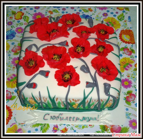 Вес 3,4 кг. Мастика ММ. Маки мне не понравились, уже сказывается сырая погода - сохнуть ни в какую ничего не желает