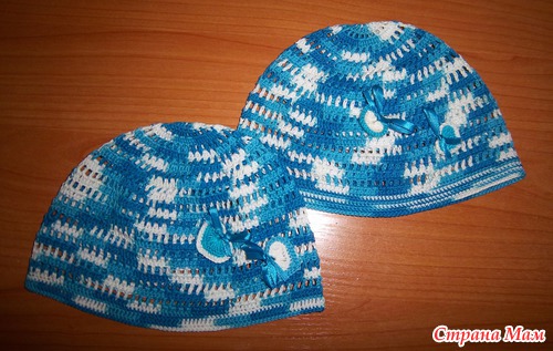 Пряжа Сосо Print, крючок №2. немного околышек отличается:в одной ст б н, а в другой ст бн +2 ряд стсн+3 ряд стбн.