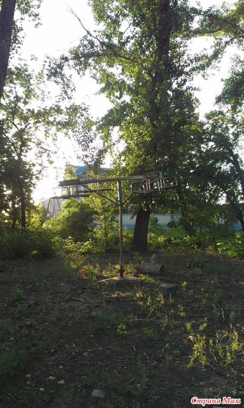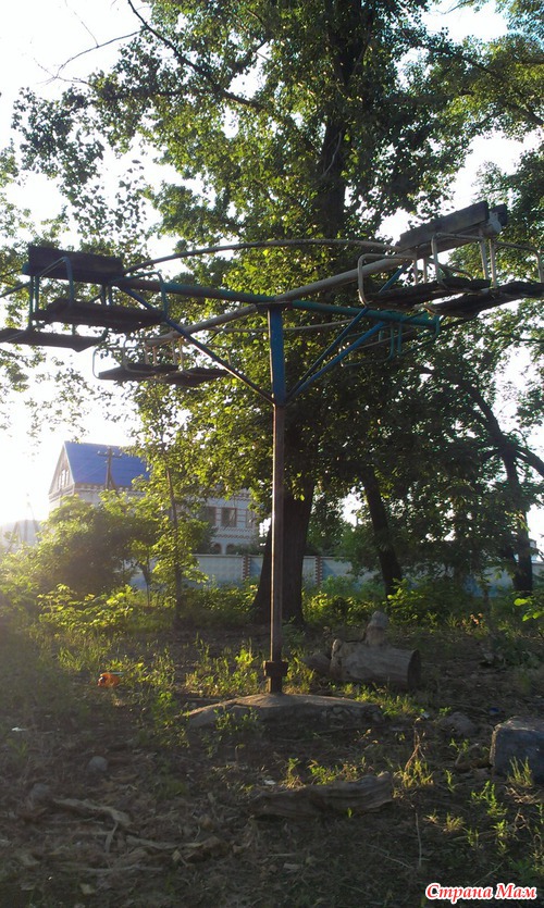 Это то, что осталось от посадки на территории Лесхоза, небольшой парк, в нем стояли 2 карусели. Мамы с детками приходят играть. А вечерами посидеть на большом бревне собирается молодежь.