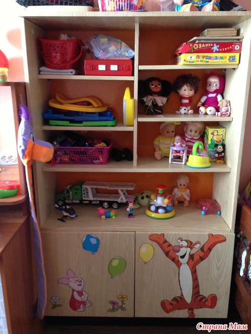 Таким вот образом мы внесли в комнату наших деток именно детские мотивы и, самое главное, бюджетно достигли поставленной цели - у нас теперь есть место для хранения игрушек!!!