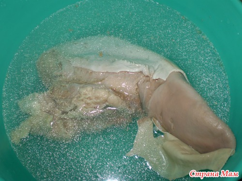 Перед тем, как выключить попробовала проколоть язык вилкой, все в порядке язык сварился. Вытащила его в холодную воду, оставила на пару минут, для того чтобы легко снять шкуру.