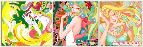 Очень понравилась самая последняя девушка (дизайн 3-ей девушки такой же, только цвета у последней нежнее). Было бы здорово найти схему в этих цветах