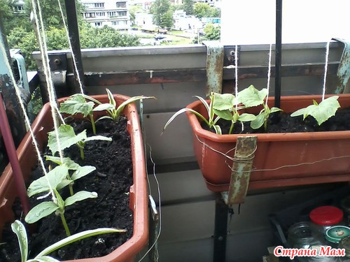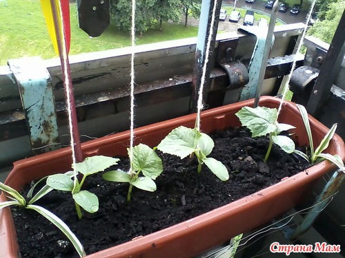 Огурчики мои на балконе подросли.