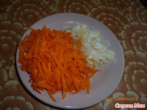 А в это время обжариваем лук с морковкой.