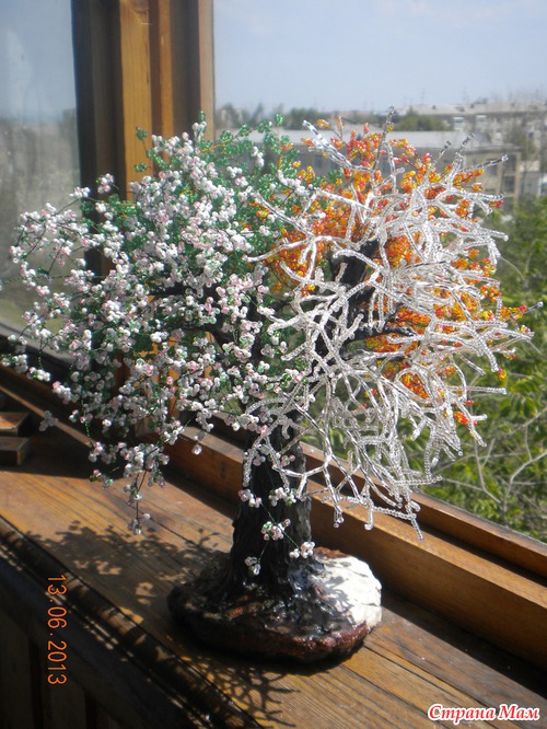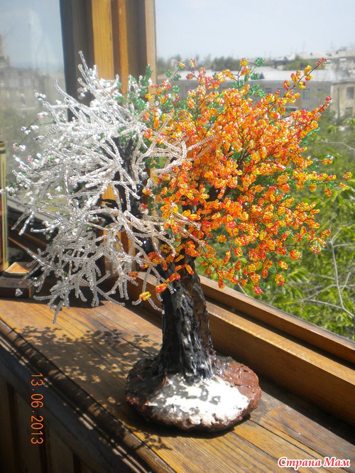 Тэги: дерево из бисера, бисерное дерево, зимнее дерево, Осеннее дерево из бисера, весеннее
