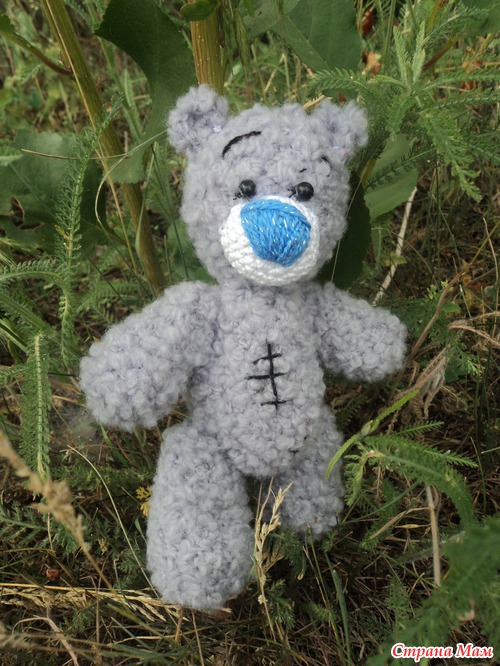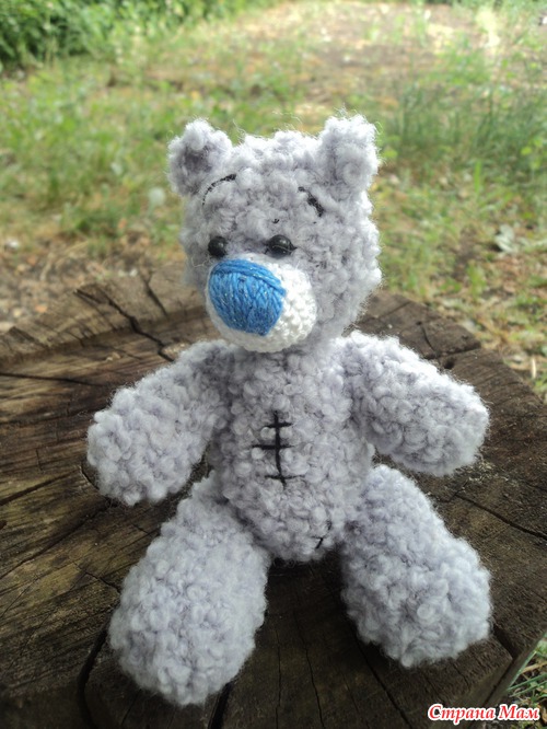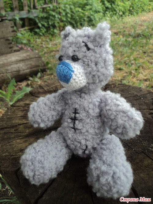 Связала мишутку для своей любительницы мишек Тедди. Вязала из мишковой пряжи "Ализе букле Эколана" крючком №2, тяжеловато было эту пряжу вязать крючком, петель не видно совсем, но результат очень обрадовал и не только меня, но и хозяйку этого михасика. Вязала без описания. Чувствую что придётся ещё одного мишку вязать для младшей дочки.