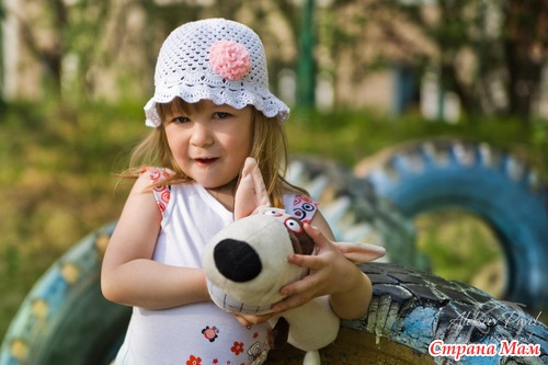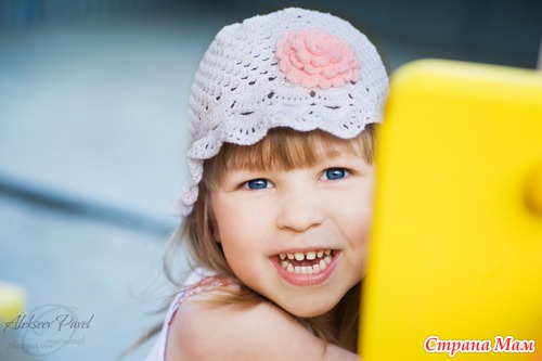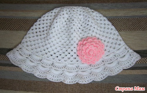 Связала доченьке первую панамку на жаркую погоду, потому и беленькая. Регилина у нас в городе я не нашла, поля связала без него.