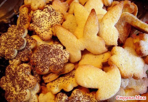И еще, когда достали с холодильника, то надо ну ооочень быстро расскатать, вырезать печенки и на противень, иначе тесо быстро согревается и становится мягким, что не очень удобно, но...я вот подумала, а ведь можно его через кондитерский шприц пропустить, выдавливать сразу на противень и получатся такие милые печеньки, как в магазине продаются.