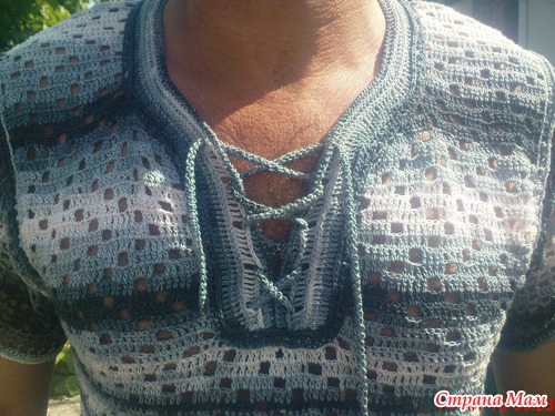 Довязала... , успела... Вчера вечером закончила, с утра уже обновил в поездку на Феодосию. Вязала обычной филейкой, без выкройки - примеряла по "любимой" футолке. Ниточки ALIZE miss, хлопок. Ушло ровно 6 моточков по 50 гр (280м). Читать полностью
