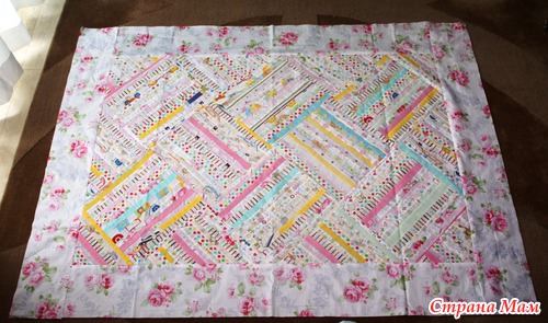 Вот такое нежное покрывало получилось (только еще не простегивала) в розовых тонах. Еще не решила как простегивать буду, в строчку или как всегда "мозги" )))). Может посоветуете что?
