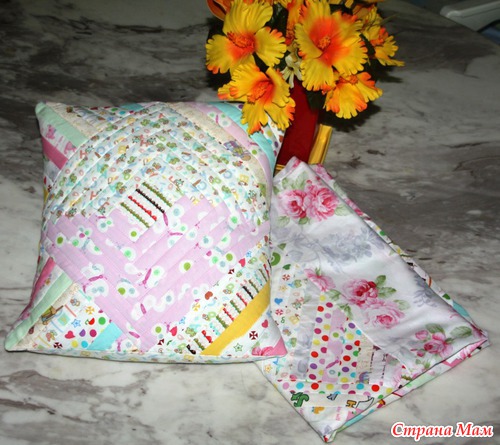 Вот такое нежное покрывало получилось (только еще не простегивала) в розовых тонах. Еще не решила как простегивать буду, в строчку или как всегда "мозги" )))). Может посоветуете что?
