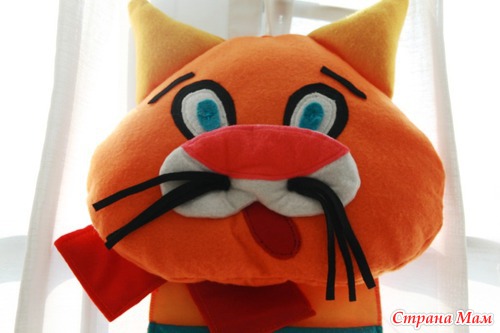 Еще вот такого котика сшила. Он с кармашками для мелочей. Вдохновлялась с инета конечно же))))