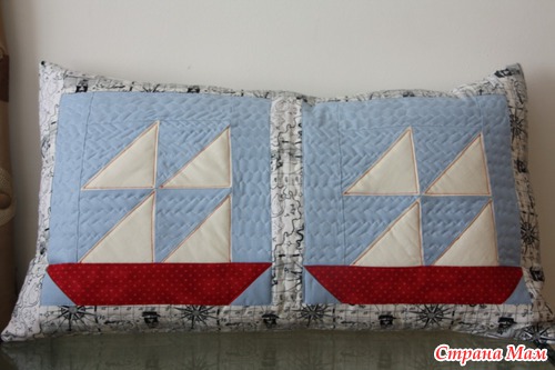 А еще сшила наволочку на детскую подушку с корабликами, в морском стиле.