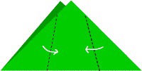 Загните острые углы полученного треугольника навстречу друг другу, чтобы их концы перекрестились.