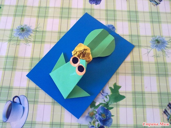 Вырежьте из цветной бумаги глаза и приклейте к лягушке.