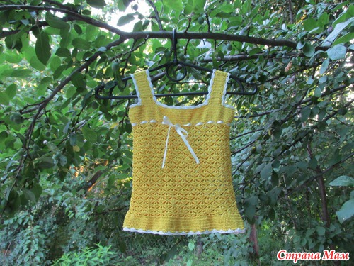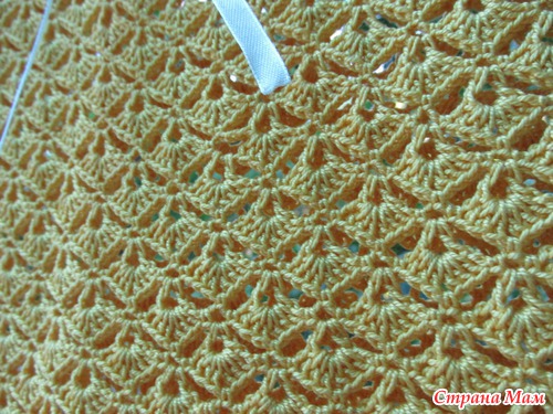 Цвет яркий и я докупила еще 2 моточка и начала вязать малой маечку