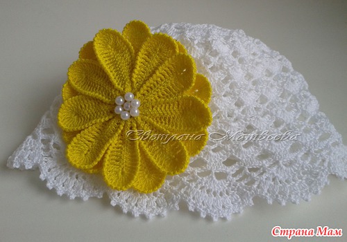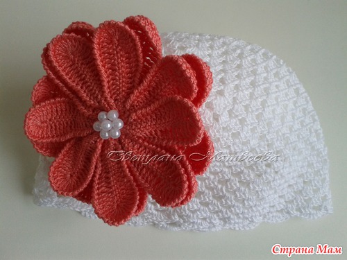 Третьи - это шапочки с таким вот пышным цветком: