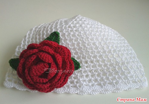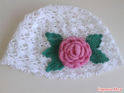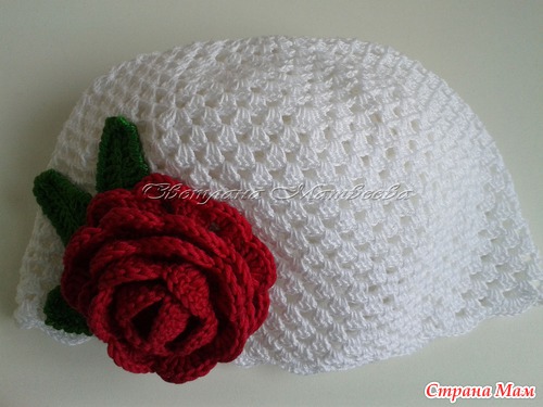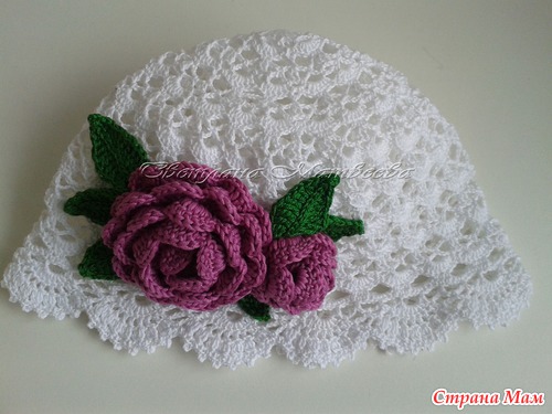 Описание шапочки - https://www.stranamam.ru/post/3409997/, описание розы - https://www.stranamam.ru/post/1773308/
