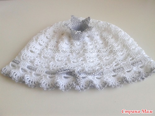 Далее шапочка "Царевна", связала их 2 штуки, показываю одну, смотрится очень красиво и необычно на девочках: