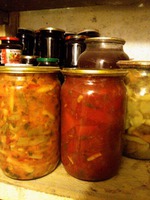 Довести до кипения и кипятить 10-15 минут в зависимости от толщины стенок перца. Во время кипения помешать 2-3 раза, уменьшить огонь. Быстро расфасовать в чистые стерильные банки и закатать (получится где-то 7-8 литров).