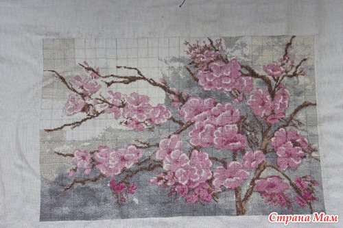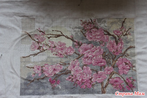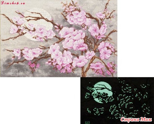 ) не стоит у меня дальше её продолжать. а картина очень нравится, Мне осталось где-то 2000 крестиков, Полностью работа будет размером 26.1х39.4 см, помогите может с вашей помощью я её быстро закончу, надежда только на вас...Картина называется века сакуры со светящими нитями в темноте вот так будет выглядеть готовая работа