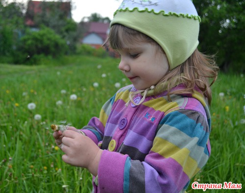Показывая на поле с одуванчиками.