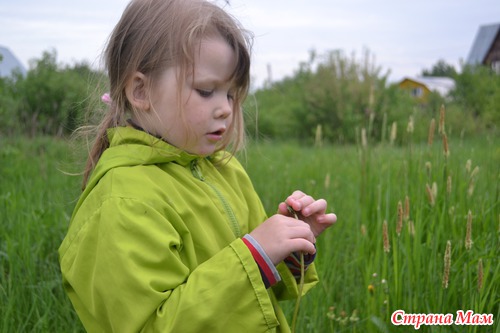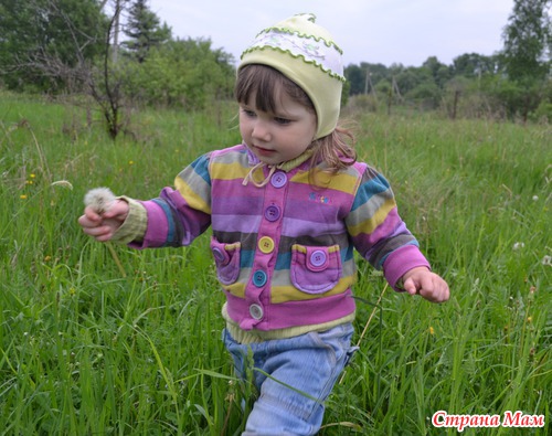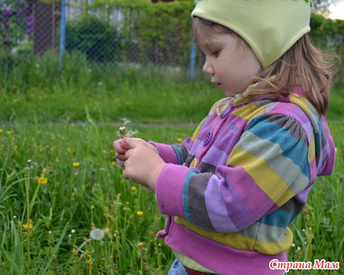 Показывая на поле с одуванчиками.