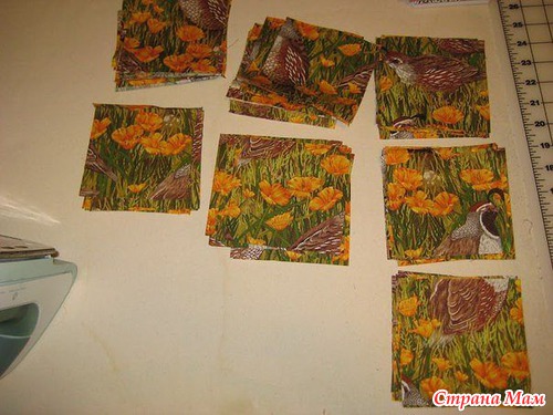 Шаг 2. Нарезам квадраты меньшего размера, чем предыдущие, из любой ткани.