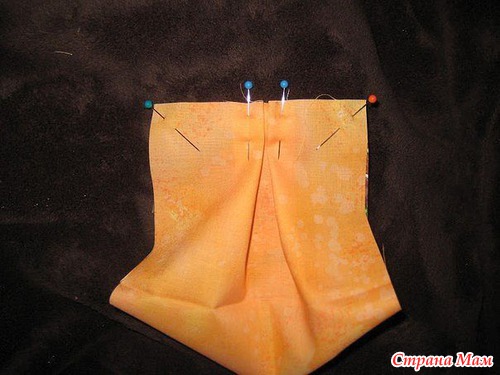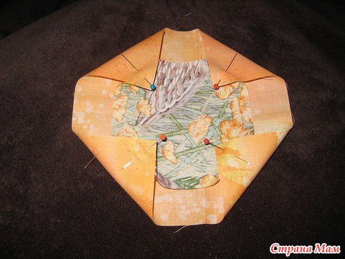 Шаг 3. Сложите вместе по 2 квадратика. Зафиксируйте булавками.