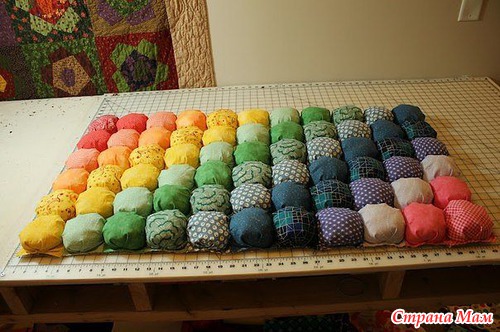 - 16 кусочков яркой ткани (желательно разных цветов)
