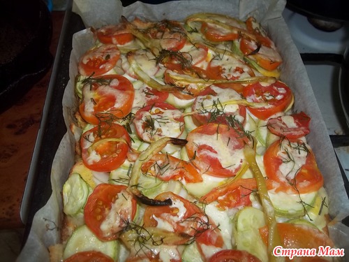 Батон нарезать произвольными кусочками и разложить в форму. Взбить яйца, добавить соль, млоко, еще раз взбить и залить батон. Тесто готово. Разложить начинку, посыпать ее зеленью измельченной, добавить кетчуп, майонез и натертый сыр. Выпекать в духовке минут 15-20.
