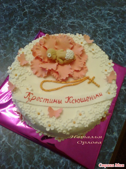 7. Тортик для девочки на крещение, внутри медовик со сметанным кремом вес 2,2 кг