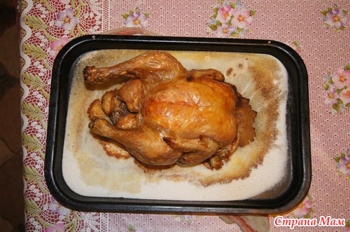 а поделитесь рецептом, пожалуйста... точнее уточните - как я поняла, курицу надо только помыть и просто положить на соль, не надо ее натирать или присыпать этой солью, да?