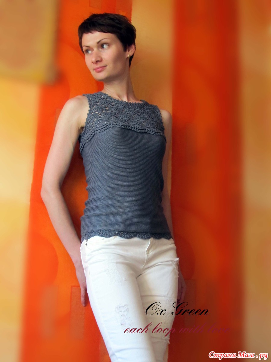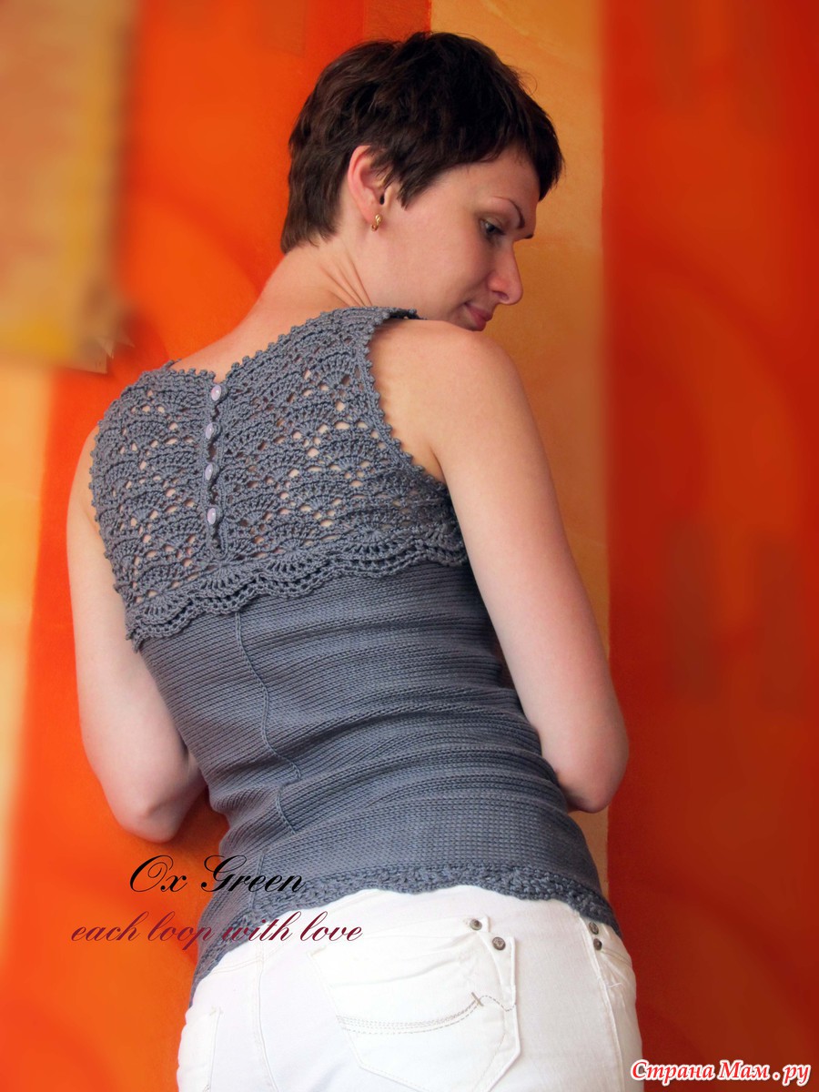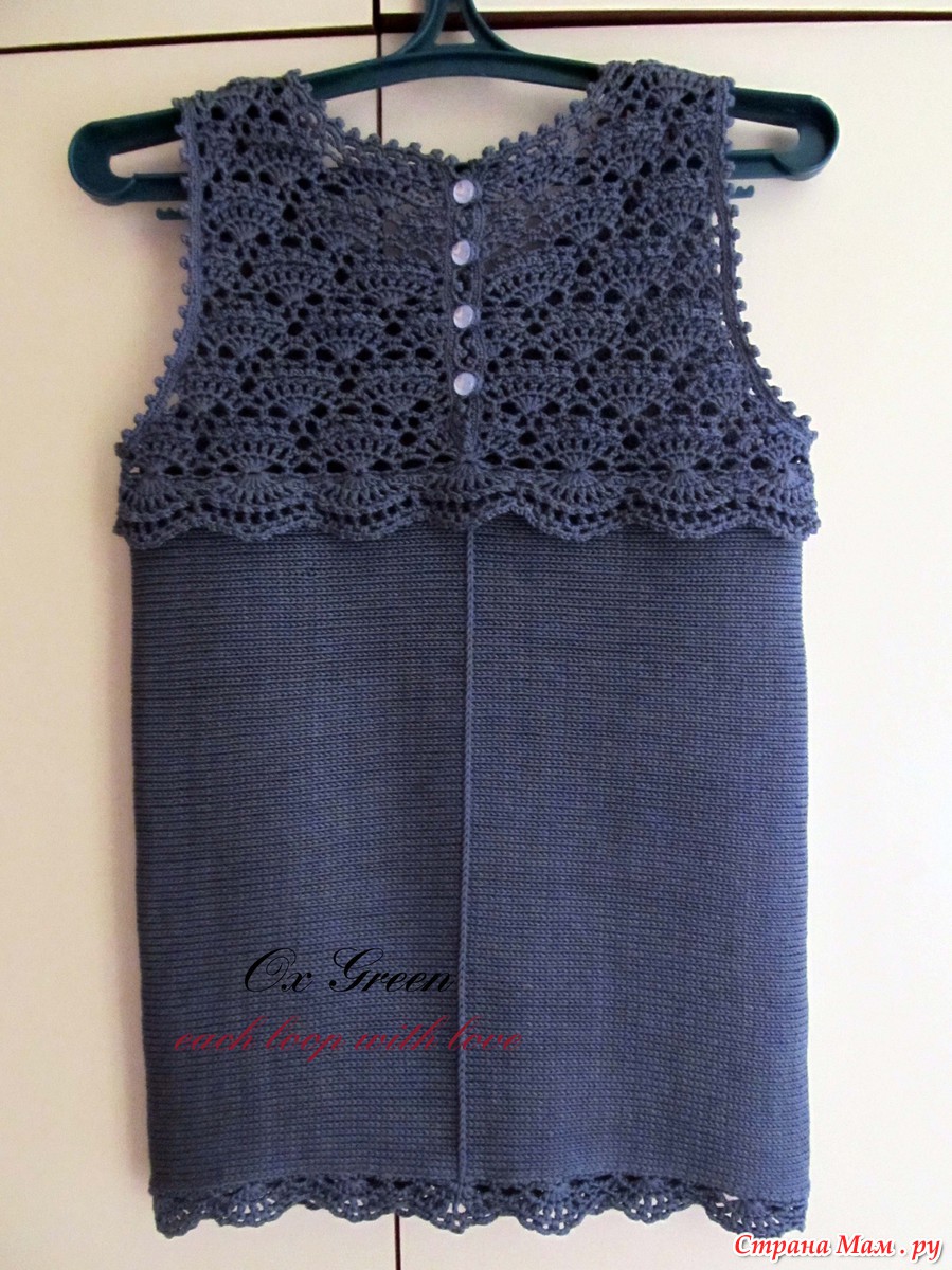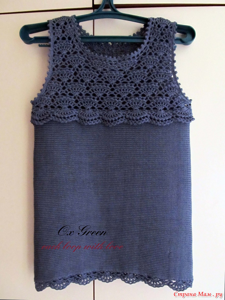 Итак, представляю вашему вниманию свежесвязанную маечку.