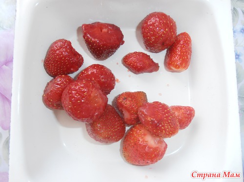 Продолжаем клубничное настроение, К вашему вниманию вкусный десерт, да еще и полезный, а еще, как мой сын творог любит только в виде сладких сырков, и вот подумала, Может скушает, и ура сказал вкусно.