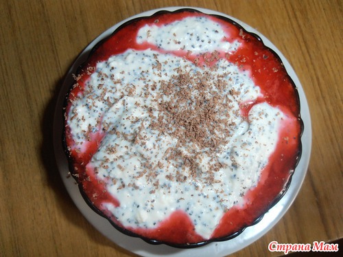 потом наш творожок, опять клубничку, творожок короче слоями, сверху можно немного тертого шоколада