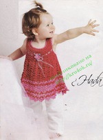 Нитью бледно-розового цвета обвязать ст. б/н края кокетки, лямки и убавить вырез. Связать цветок из 4 возд. петель, замкнутых в круг. 4 лепестка вяжутся из 2 ст. с/н каждый.