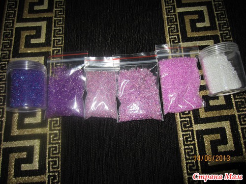 100 гр. общий вес бисера для цветущих кистей( белый цвет, несколько оттенков сиреневого и розового)