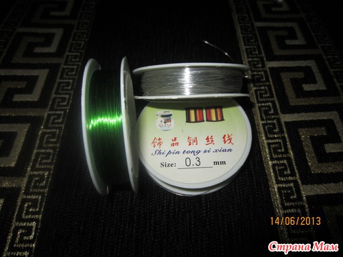проволока серебристая для кистей 0,3 мм. и зеленая для листвы( можно воспользоваться и медной)