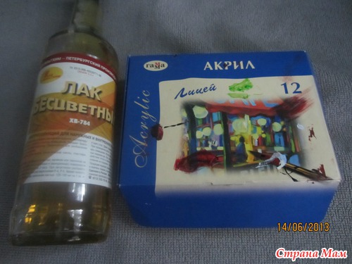 лак, краски акриловы( можно акриловую строительную и коллеры)